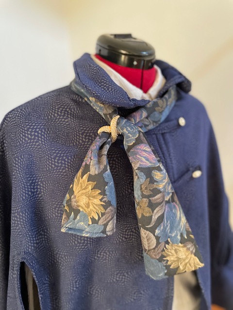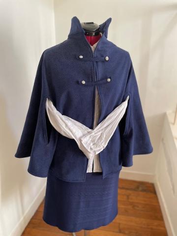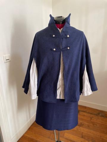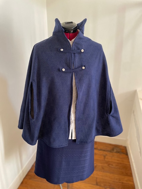 Prix 52,90 € Cape ouverte pour les bras et foulard.La cape est fermée par des boutons pressions.Le foulard est retenu avec un bijou vendu avec l'ensemble.Les frais de port sont inclus Variations